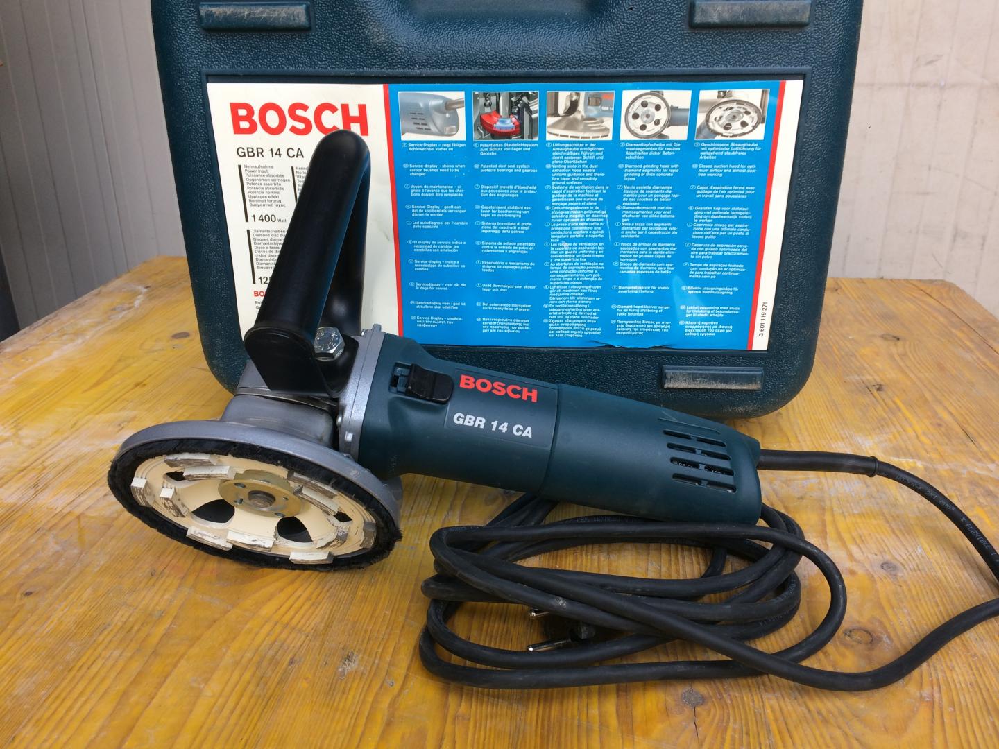 LEVIGATRICE CALCESTRUZZO BOSCH GBR 14 CA, POTENZA W 820, CORRETE V220, DIAMETRO DISCO mm 125, GIRI/MIN 11000